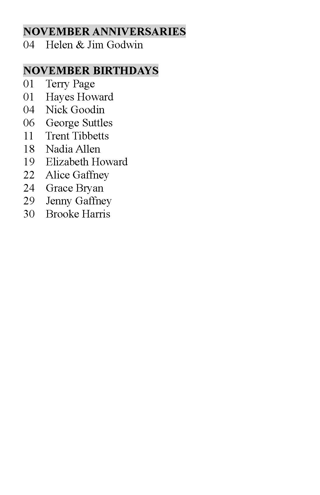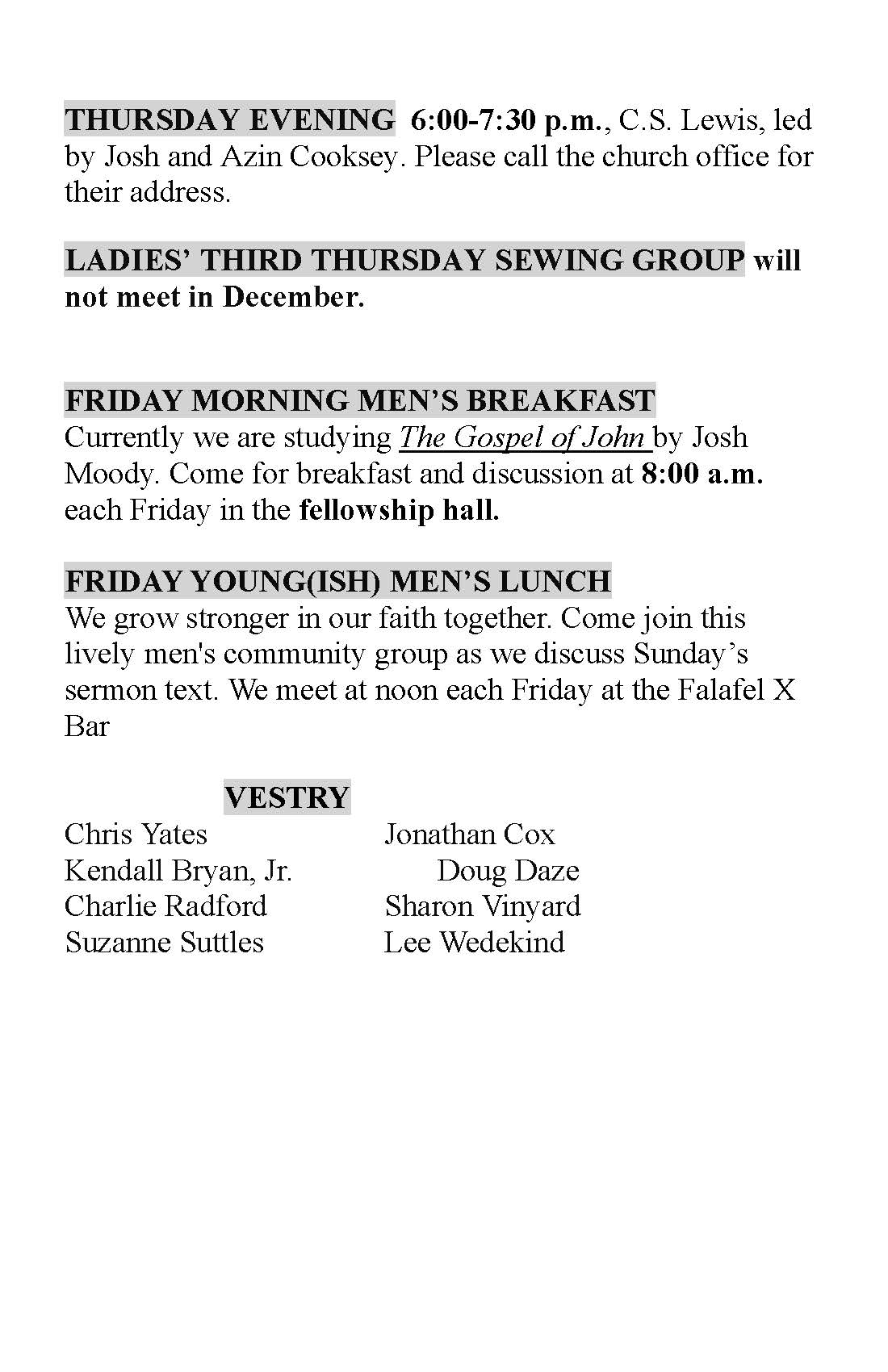 Does NOT MEET in December.