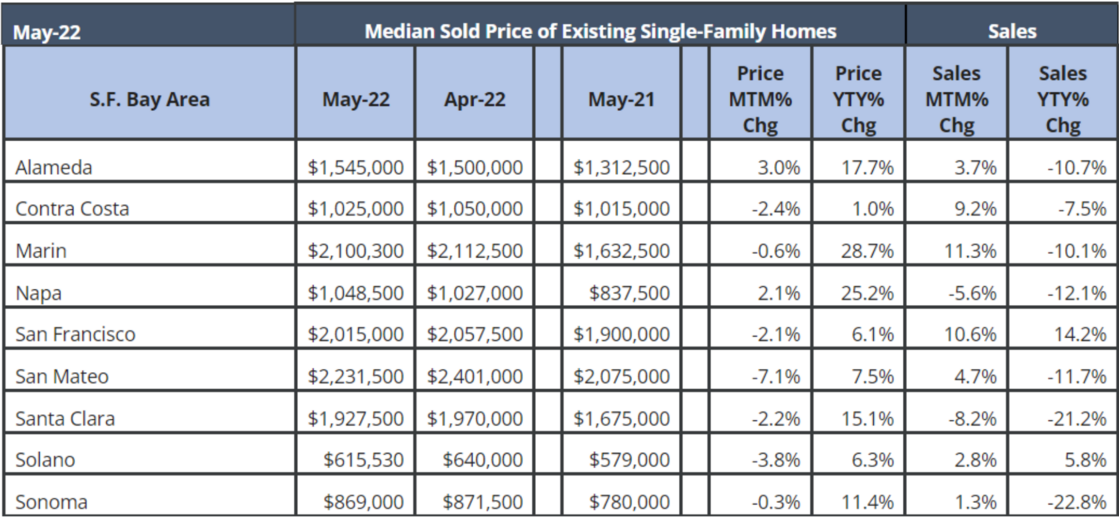 Bay Area Home Sales & Price Report - May 2022