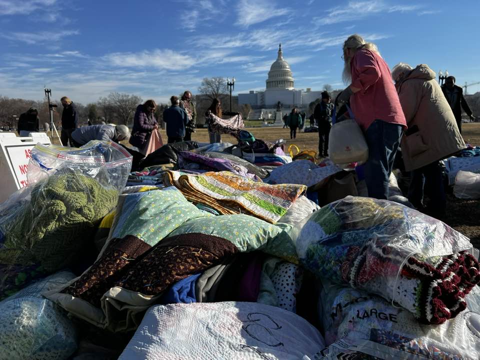 It is unfortunate that blankets do not have legs of their own to move from across the country to Washington, DC. No friends, that required the dedication of a host of volunteers willing to pack cars, vans, and busses to get the blankets to their appointed spot. The effort was so stellar, that one of our partners in this project, Diane Nilan, used her film making skills to document the hard work in a video montage which you can view using the link below.