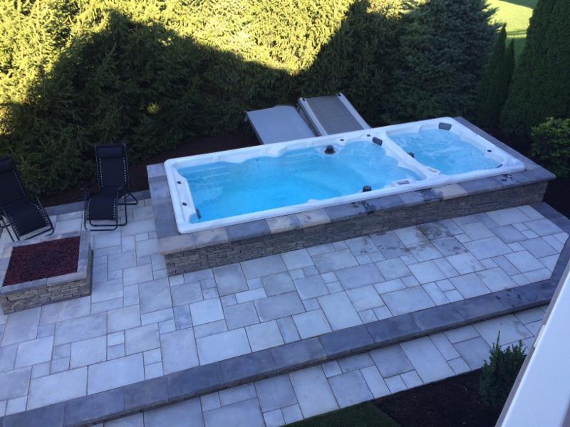 This Swim Spa has 2 seats on one end to sit and relax after swimming against the strong turbo jets.