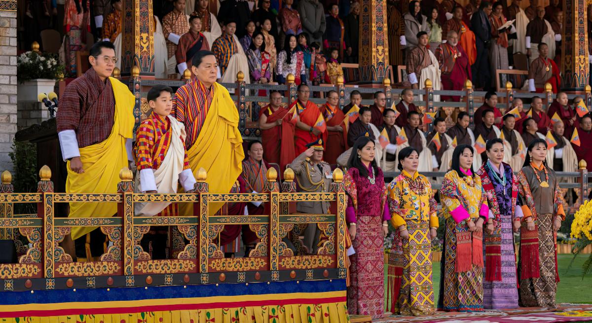 | | His Majesty The King, His Majesty the Fourth Druk Gyalpo, Her Majesty The Gyaltsuen, His Royal Highness the Gyalsey, and Their Majesties the Queen Mothers during the 118th National Day Celebration in Bumthang. (Photo courtesy: Royal Office of Media) | | |