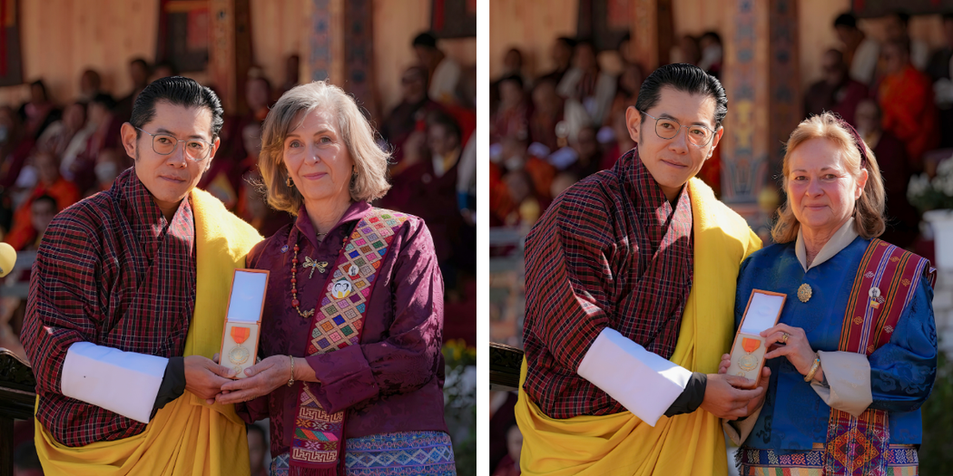Daphne Hoch-Cunngingham (left), Co-Chair Emerita of the Bhutan Foundation, was also awarded the National Order of Merit (Gold) in recognition of the Hoch family’s longstanding friendship with Bhutan and their deep commitment to preserving its environment and culture. The Hoch family’s connection to Bhutan since the 1960’s spans four generations and the family’s support has continued with consistency, sincerity, and deep respect.