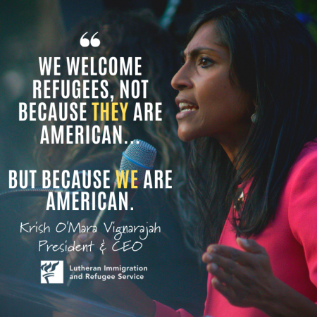 Krish O’Mara Vignarajah is the President and CEO of Lutheran Immigration and Refugee Service. She previously served in the Obama White House as Policy Director for First Lady Michelle Obama and at the State Department as Senior Advisor under Secretary of State Hillary Clinton and Secretary of State John Kerry.