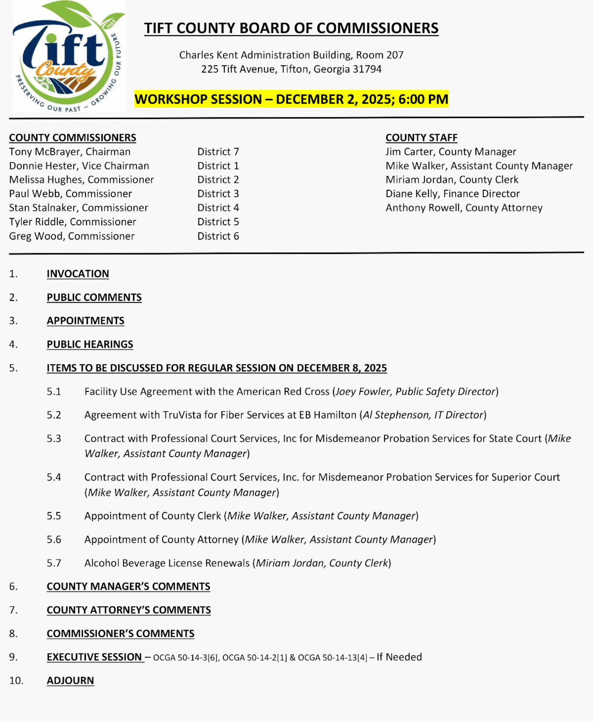 TIFT COUNTY COMMISSION TO HOLD WORKSHOPS NEXT WEEK