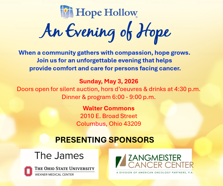 "An Evening of Hope" was held each year from 2016 to 2019, and thanks to all of you, it was always an unforgettable event that brought together the Hope Hollow community... our incredible volunteers, our friends, our donors, and patients and their loved ones whom we serve. We are thrilled to once again host this inspiring gathering, during which we will share stories of the sacred ground we walk upon with those we serve each day, and raise needed funding that enables Hope Hollow to provide welcome, hospitality, and hope to persons while on their journey with cancer.