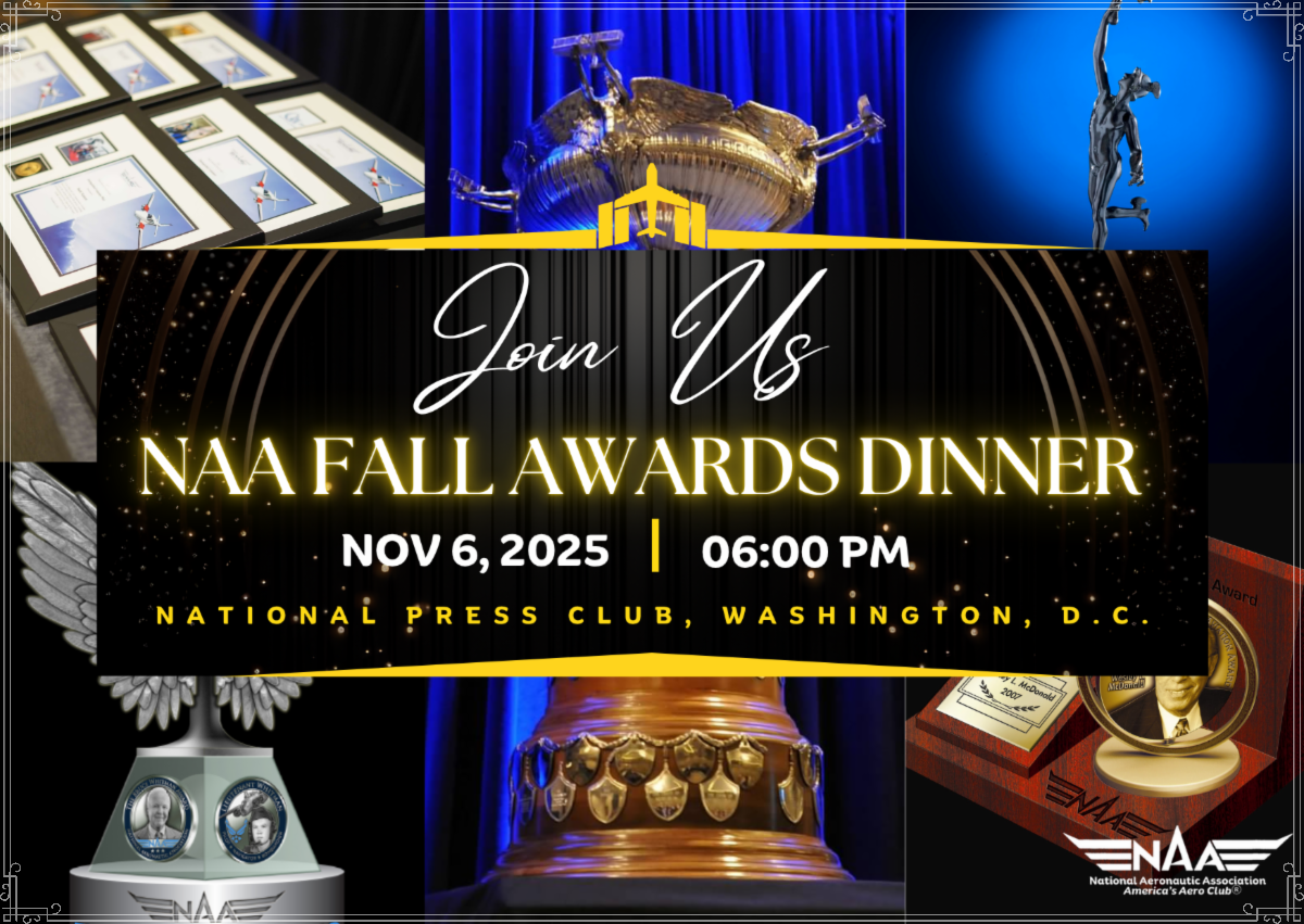 The National Aeronautic Association (NAA) is thrilled to invite you to the NAA Fall Awards on November 6th in Washington, D.C. at the National Press Club.