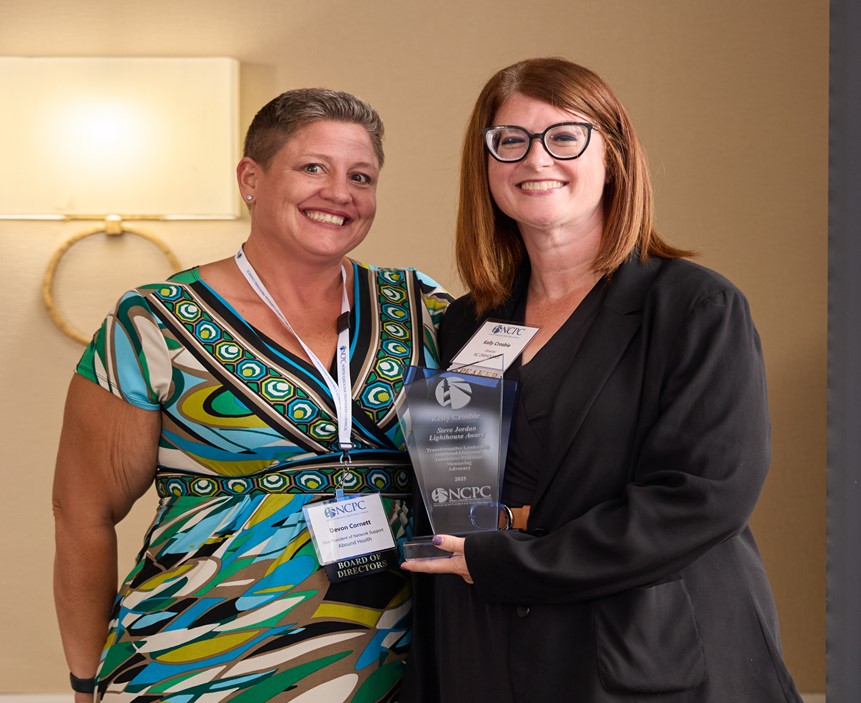| | The North Carolina Providers Council awarded Director Kelly Crosbie the Steve Jordan Lighthouse Award at their annual conference in Asheville on September 15. The award honors a person who has made an extraordinary contribution to the mental health, substance use, and intellectual and developmental disabilities service systems in North Carolina. Honorees demonstrate efforts to build a strong network of community-based and community-accessible services, a primary goal in the Division’s five-year strategic plan. | | | The North Carolina Providers Council was organized to promote the overall improvement of both the quality of, and access to community support services for individuals who require supports to live in the communities across North Carolina. | | |