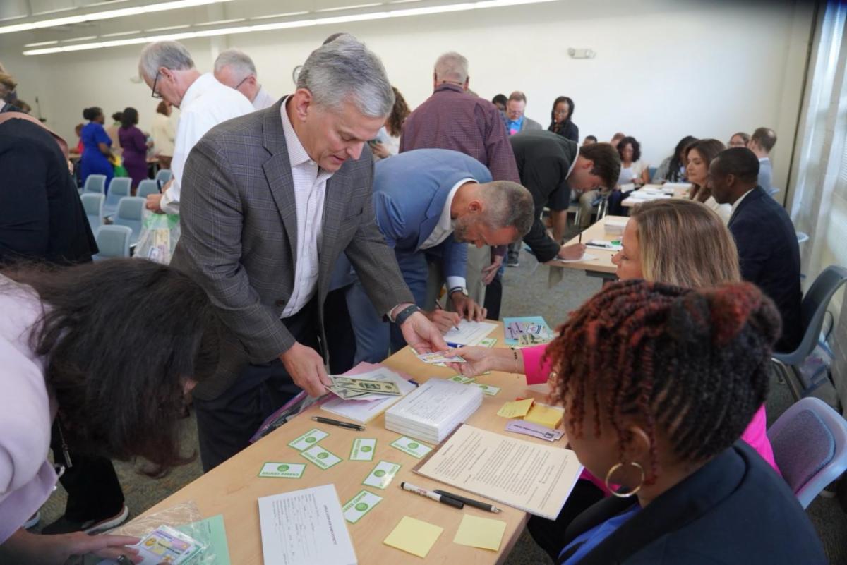 Governor Josh Stein and First Lady Anna Stein, along with members of the Governor’s Cabinet and DHHS staff members Kelly Crosbie and Saarah Waleed, experienced navigating reentry in a simulation organized by the North Carolina Department of Adult Correction on Monday. The simulation replicated the challenges people face as they transition back into society. DMH/DD/SUS continues to support a variety of programs aimed at supporting people with mental health and substance use needs who are re-entering their communities.