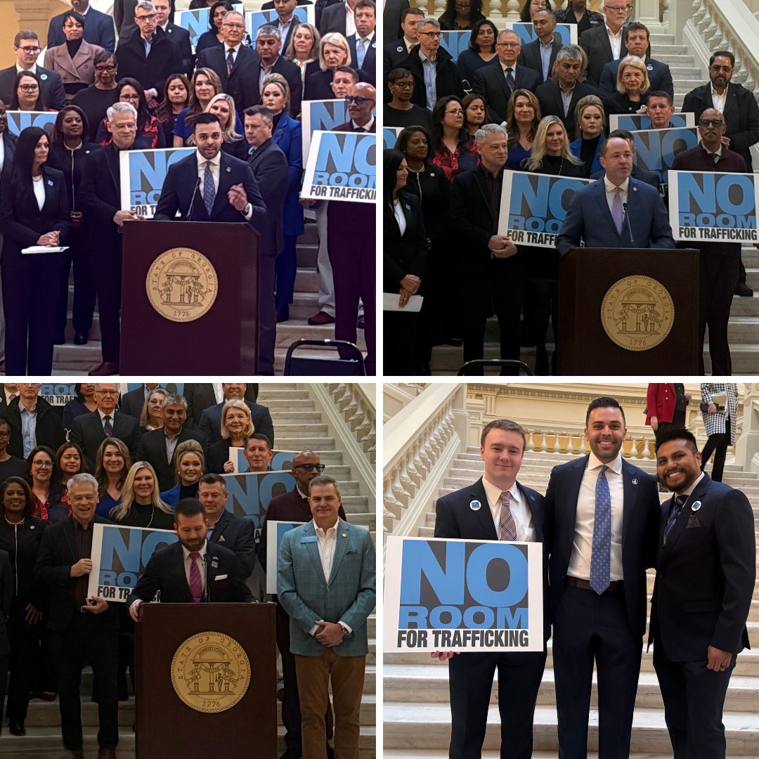 Georgia Leaders Unite With Hospitality Industry to Advance Human Trafficking Prevention Efforts | Last week, hospitality leaders united with Georgia lawmakers around a clear message: Human trafficking has no place in Georgia. At a press conference hosted by the Georgia Hotel & Lodging Association, AAHOA joined Attorney General Chris Carr, Senator Shawn Still, AAHOA Georgia Regional Director Vik Zaver, and GHLA President & CEO and AAHOA Ambassador Chris Hardman, in support of legislation mandating human trafficking awareness and prevention training for hotels and short-term rentals statewide. |