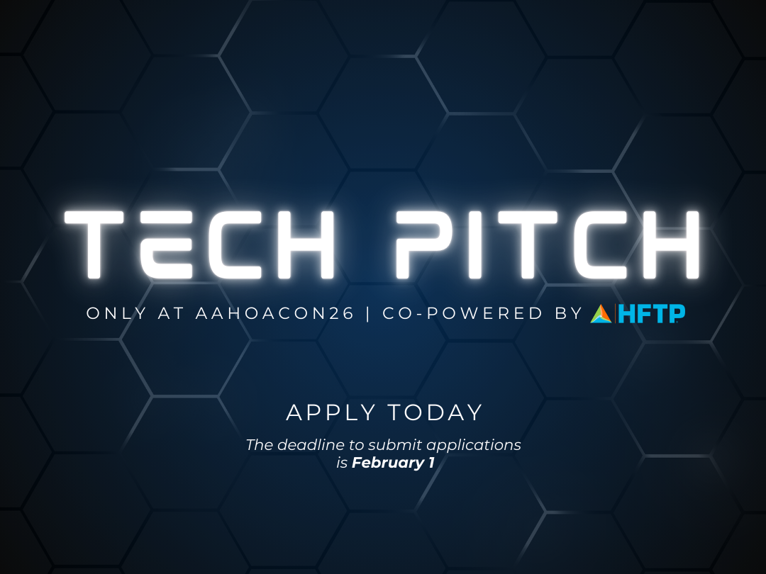 Calling all founders, disruptors, and problem-solvers! This year, the Tech Pitch Competition brings a major upgrade: Finalists will pitch live on the AAHOACON Trade Show floor, giving your company high-impact visibility right where the industry's biggest conversations are happening.