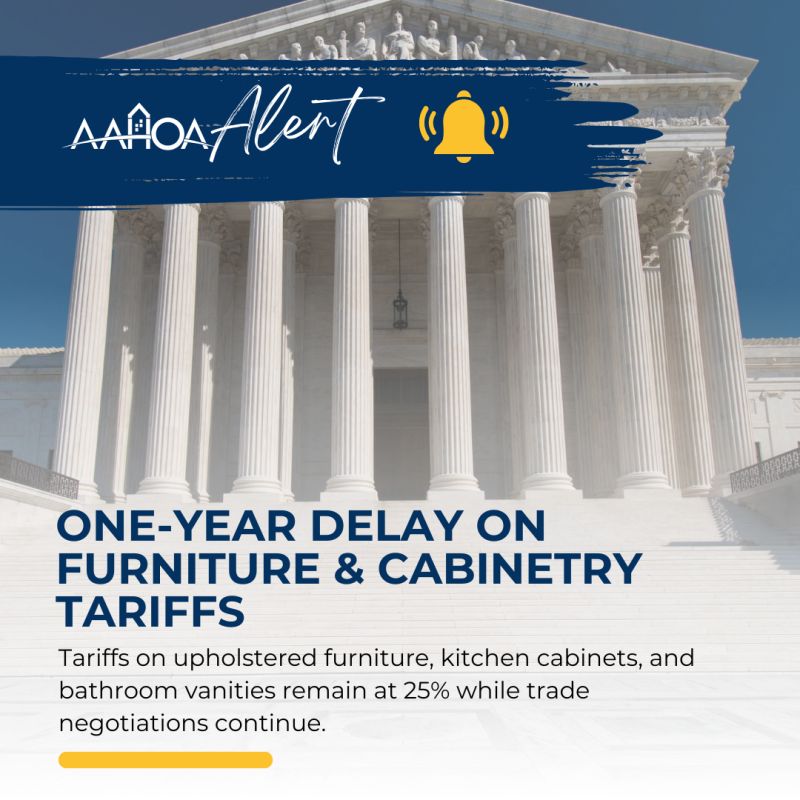 AAHOA Applauds One-Year Delay of Tariff Increases on Furniture and Cabinetry | | |