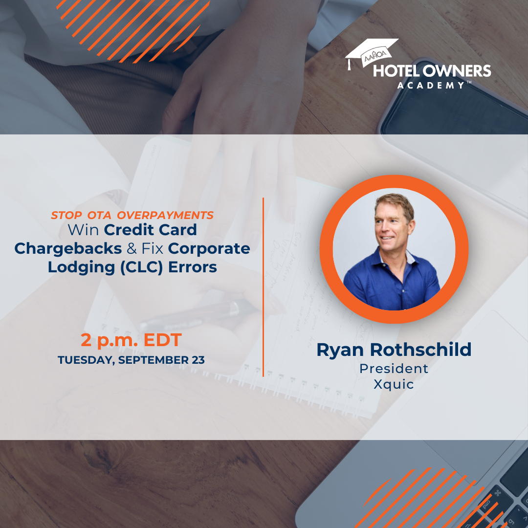 Are you unknowingly leaving money on the table? For 98 percent of AAHOA hotels, the answer is yes. Join us for Stop OTA Overpayments: Win Credit Card Chargebacks & Fix CLC (Corporate Lodging) Errors to learn how to: