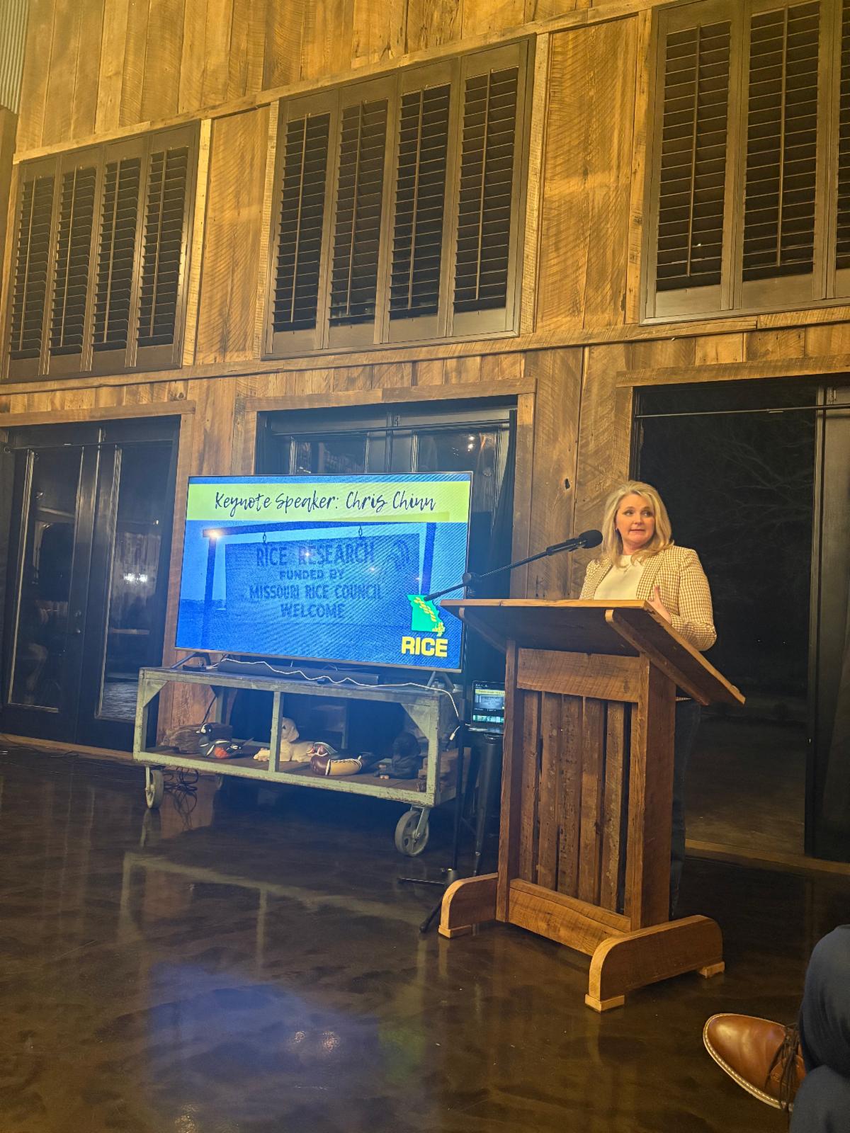 | | President and CEO Mollie Buckler addresses the crowd at the Missouri Rice Council Annual Meeting | |