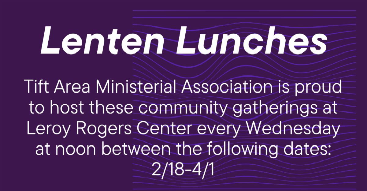 As we enter the season of Lent, the TIftarea Ministerial Association would like to invite citizens of Tifton and the surrounding communities to participate in a series of Lenten Lunches at Tifton’s Leroy Rogers Center.