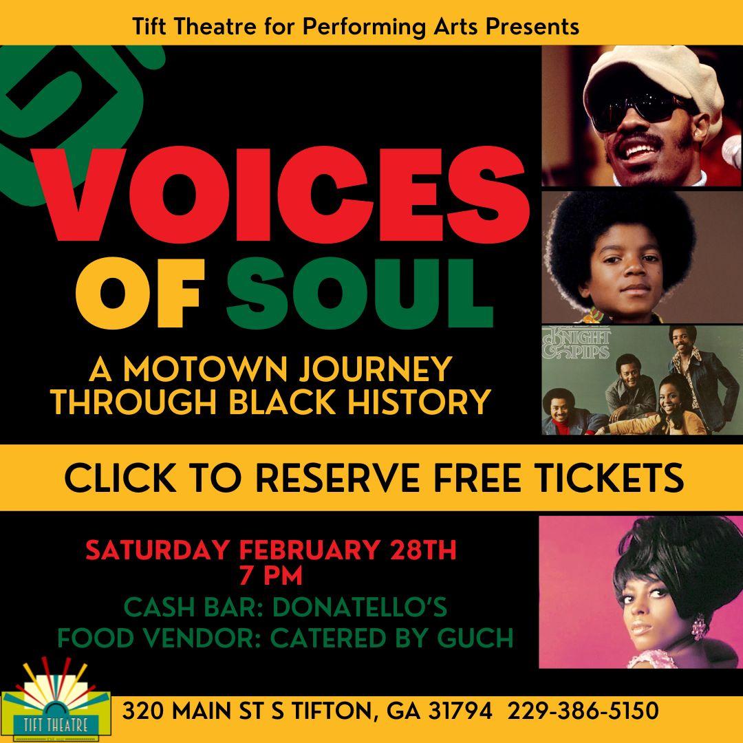 • Voices of Soul: A Motown Journey Through Black History, 7 p.m., Tift Theatre for the Performing Arts, Downtown Tifton