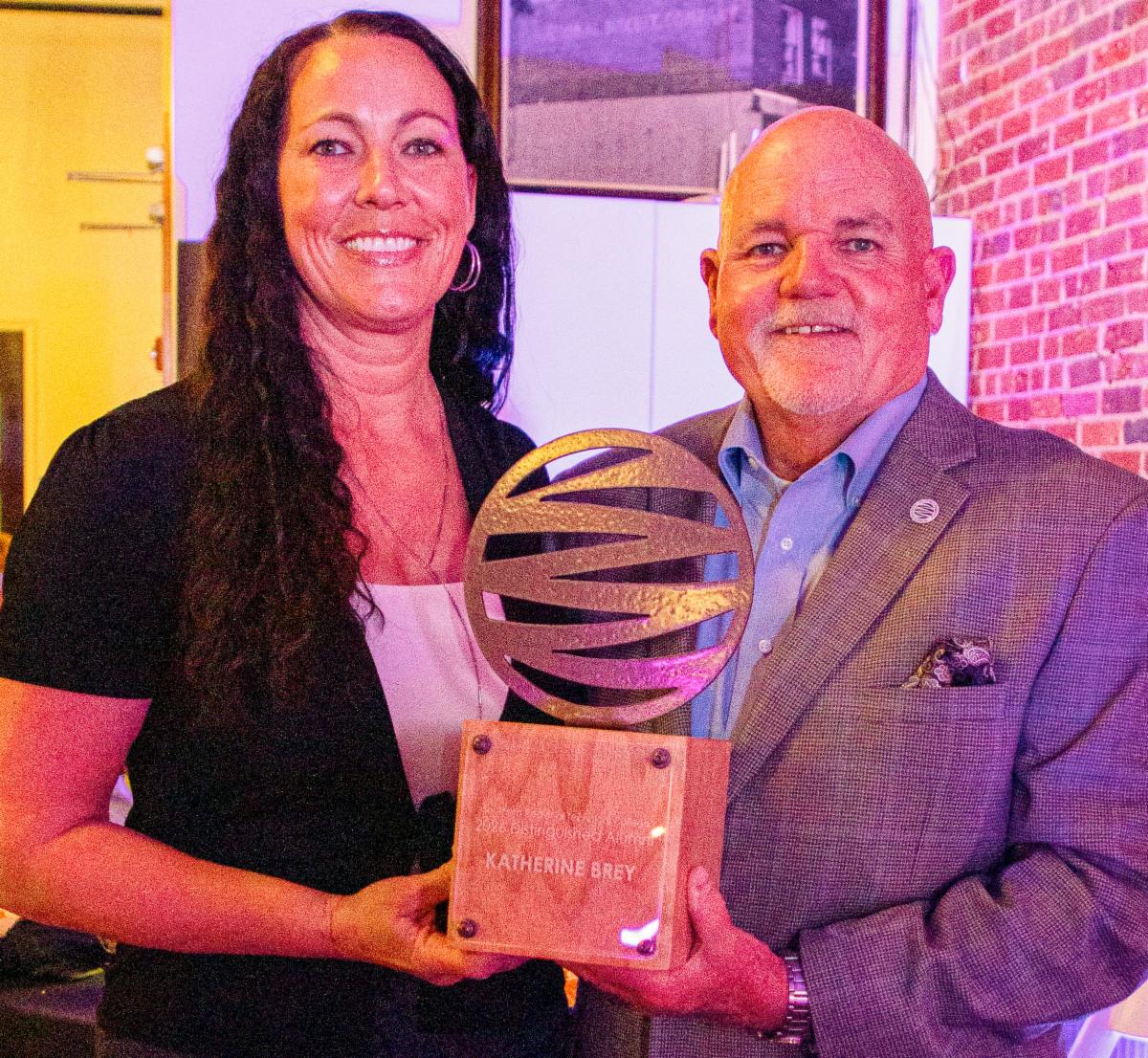 | Katherine Brey of Tifton is presented the Distinguished Alumni Award from SRTC President Jim Glass. | |