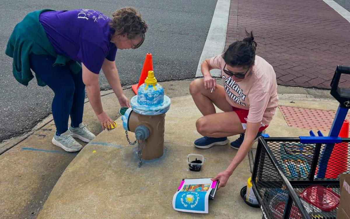 On Thursday, Georgia Smith, the newly appointed executive director of Tifton Council for the Arts, and Chelsea Webster, director of children’s programming, painted a fire hydrant with images of books, a Reading Rainbow, and a globe – demonstrating a literacy theme – at the corner of Love Avenue and Second Street.