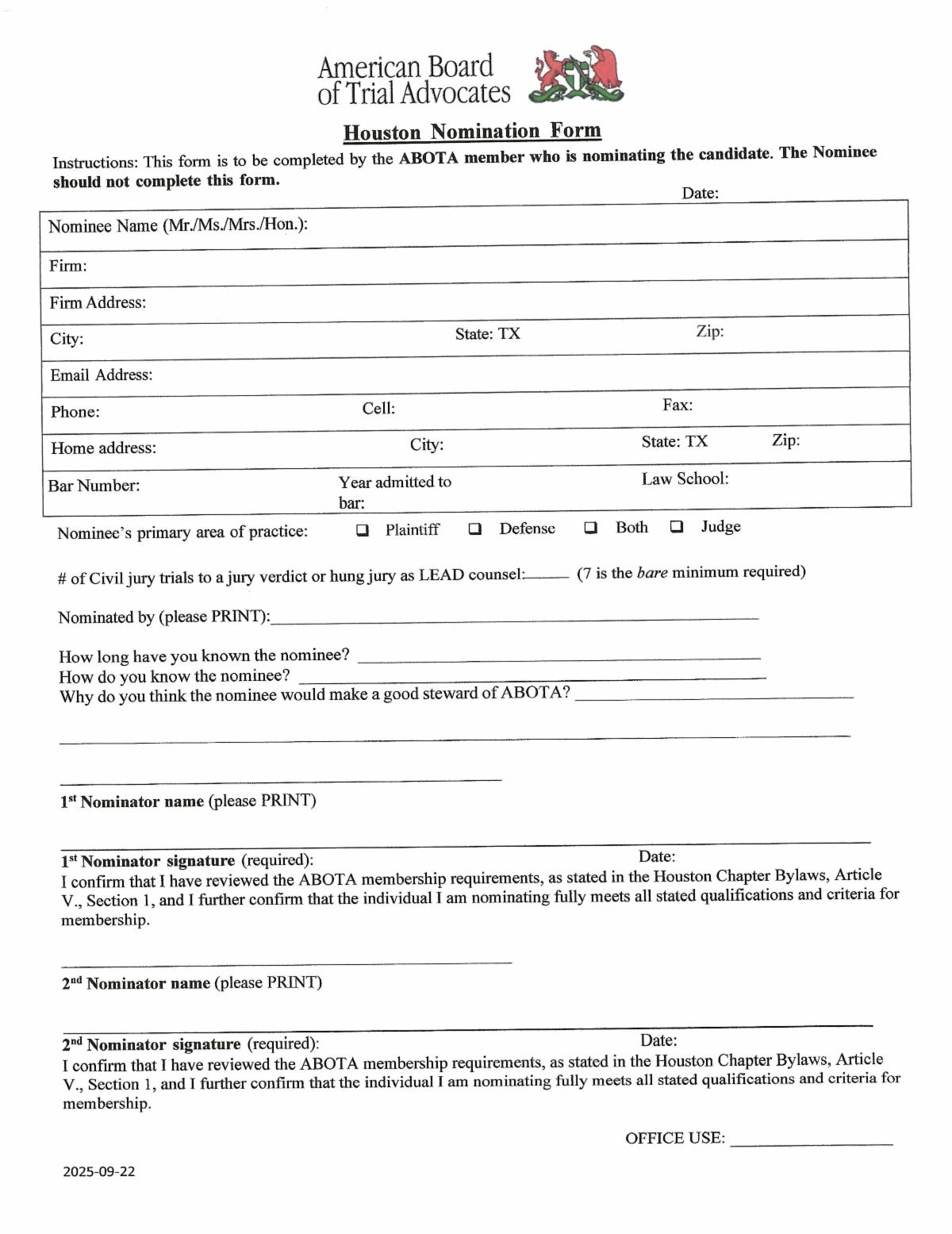 1) Member & Second Nominator nominate with HOUSTON Nomination Form