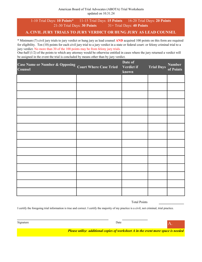 6) Those approved for membership complete ABOTA Application (from ABOTA website), send with check for $300 to current chapter President, Dwaine Massey, by Friday, 05/15/26 (do NOT send to the National office – it will delay the process, and they will return it to us!).