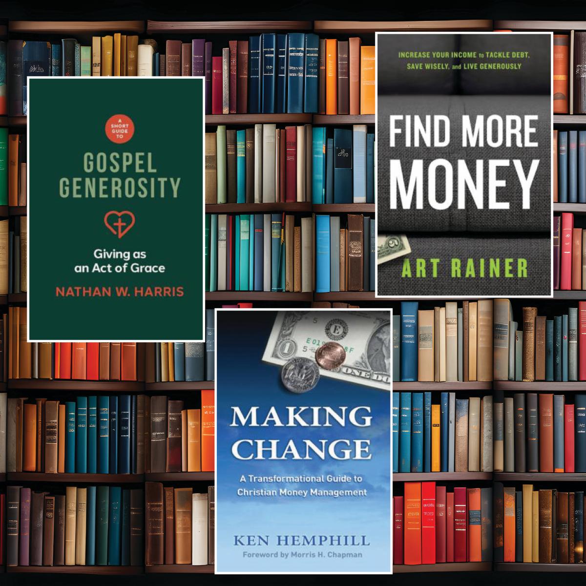 Three books that offer biblical wisdom on personal finance, helping believers align their financial choices with God’s purpose, are Making Change by Ken Hemphill, Find More Money by Art Rainer, and Gospel Generosity by Nathan W. Harris.