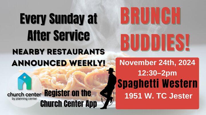 Join us after service for in-person Brunch Buddies, Sunday, November 24th, after service at Spaghetti Western, 1951 W. TC Jester