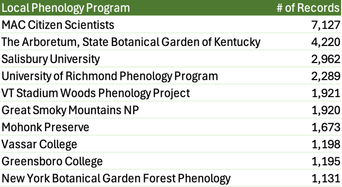 Your observations added another year to the cloned plant dataset that began in the 1950s. This dataset has been used in a variety of research to determine the role of genes and environmental factors in the timing of leaves, flowers, colored leaves, leaf fall, and more.