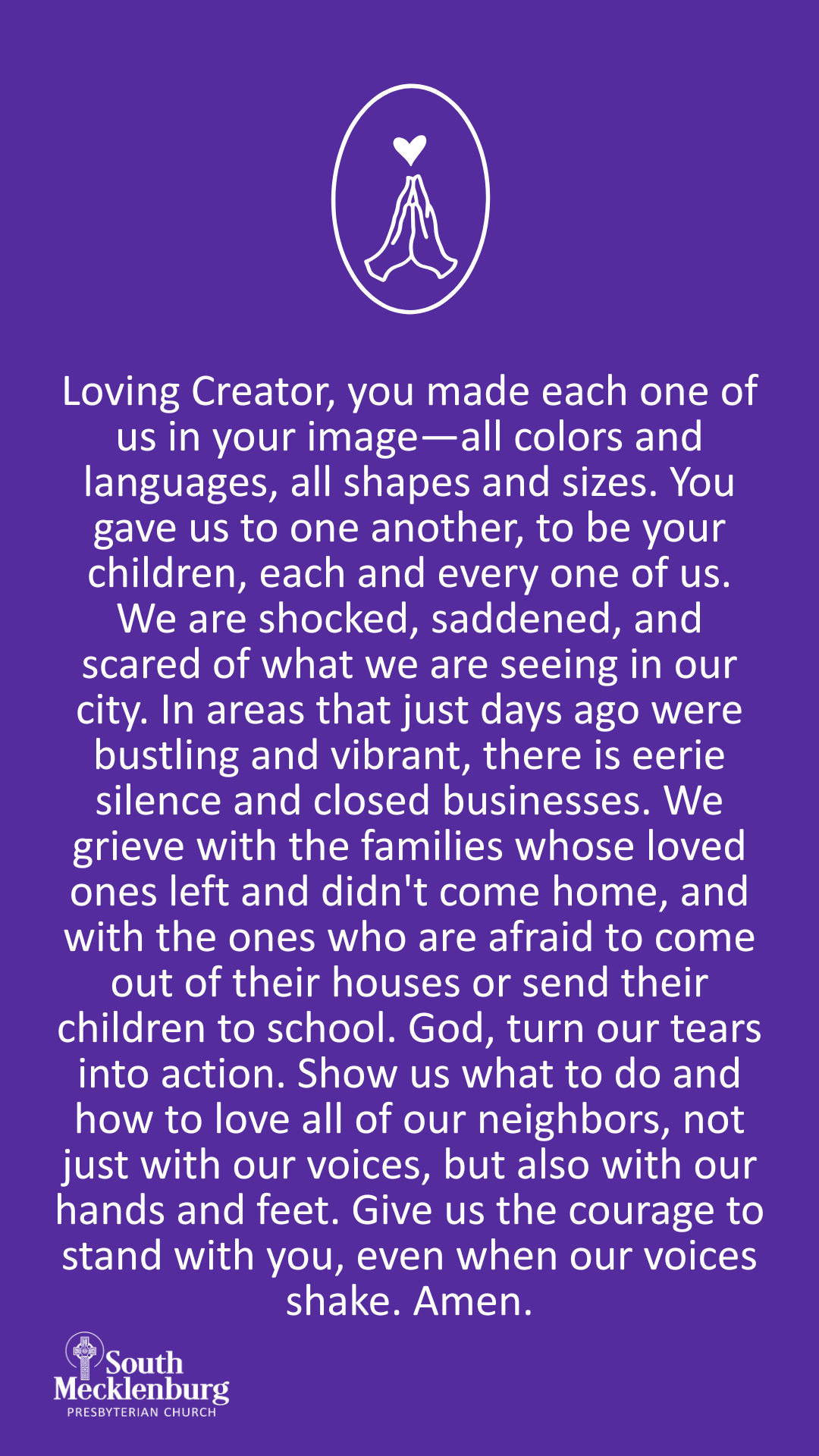These events are not just political headlines. They are stories about families, children, youth, and the dignity of human beings made in God’s image. Some families in our own congregation and some of the mission partners we support are personally affected. We know that we have kids in Spanish language immersion schools, among other schools, who are seeing very high rates of absenteeism. Your children might have friends that didn’t come to school today, and they may be worried about them.