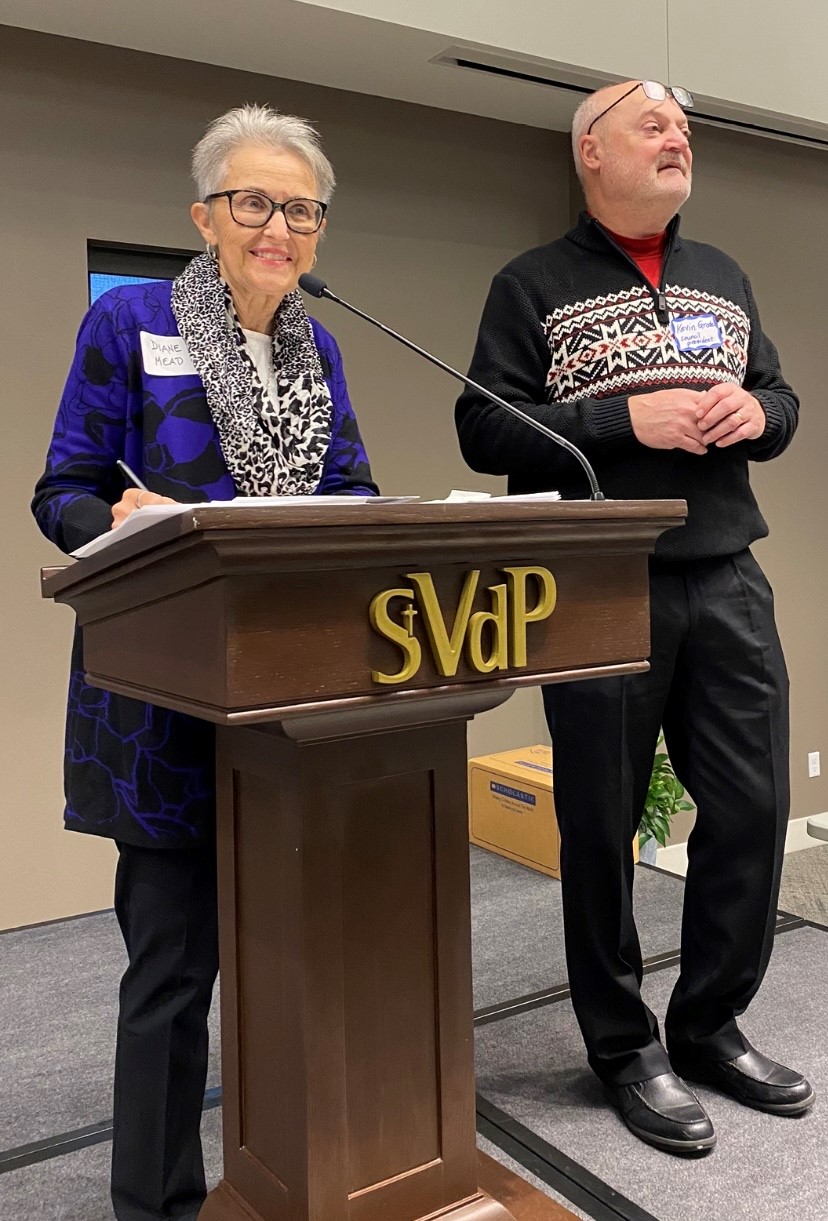 P.S. One of our long-time, most committed Vincentian volunteers – Diane Mead – passed away on December 15th, following a lengthy illness. Diane was very much an “action-oriented” type of person, as well as had an especially warm heart for the struggling families that the Society serves. We want to honor Diane’s memory and impact on the Society of St. Vincent de Paul in this 2025 January Newsletter in the “Memorial Vincentian Spotlight”.