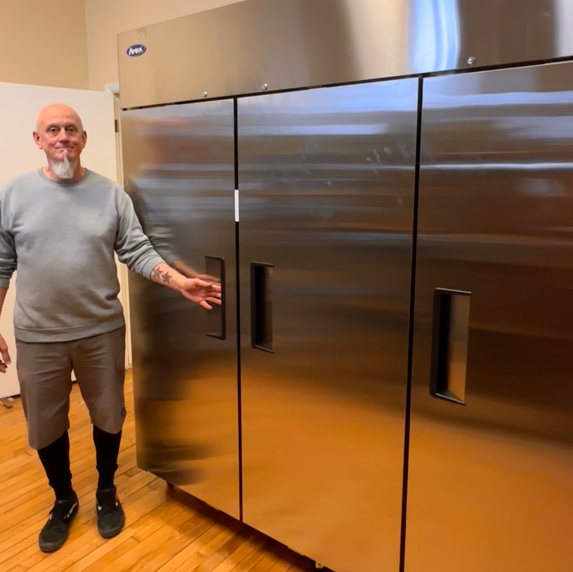 Recently, the Society of St. Vincent de Paul Omaha was able to upgrade our freezer capacity (and quality) at both our SSVP Food Pantry and our Holy Family Center. With multiple limited-functioning freezers at these two locations, we knew it was important to get new ones that could match the requirements of our programs that provide food for those in need. Special thanks to the donors who made these upgrades possible, including this new 3-door freezer at our Holy Family Center (next to our Coordinator of Holy Family Ministries, Jeff Spangrud).