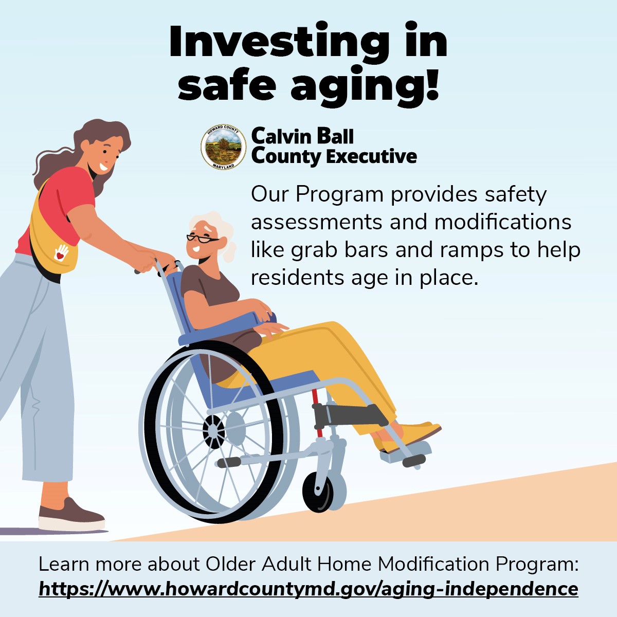 Howard County’s Older Adult Home Modification Program (OAHMP) supports safe, independent living by connecting older adults and caregivers with occupational therapists for home safety assessments. Funded by the U.S. Department of Housing and Urban Development (HUD), the program offers both low-cost upgrades—like grab bars and lighting—and larger improvements such as stair glides and ramps. These enhancements help residents stay safely housed and confident in their daily routines.