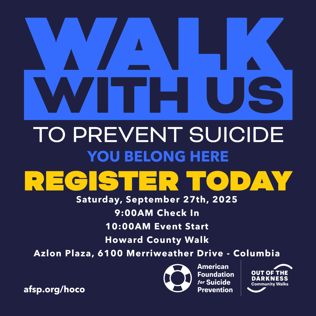 Click here to register. For any questions about the Howard County Walk, please contact Jessica Fisher at 410-313-0616 or jefisher@howardcountymd.gov.