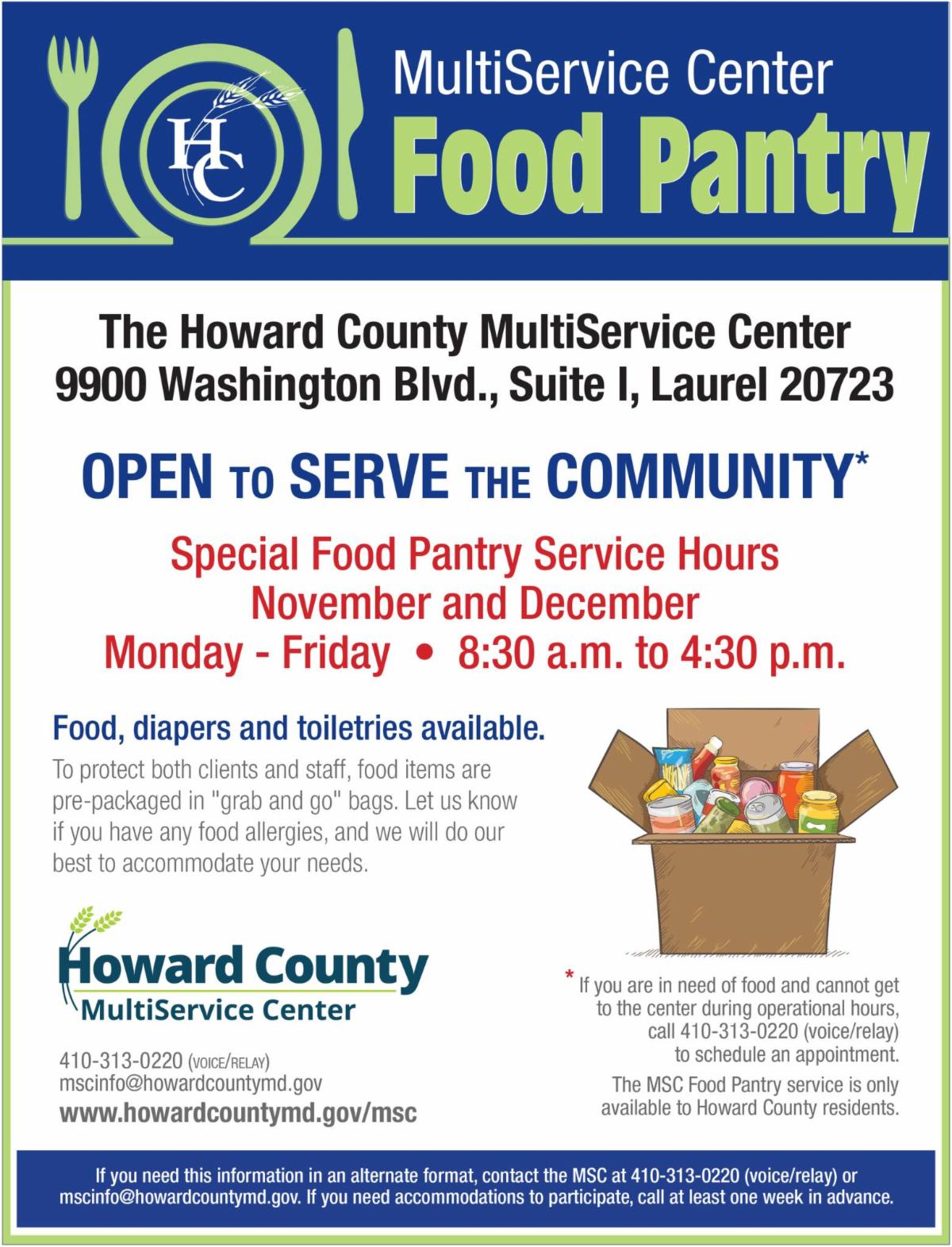 The Howard County MultiService Center (MSC) has expanded its food pantry hours to meet growing community needs.