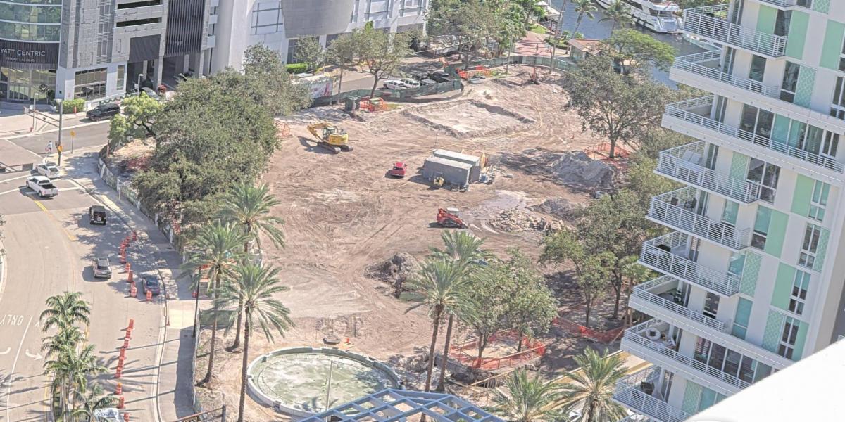 Other impacts: One eastbound lane along Las Olas Boulevard will remain closed from Andrews Avenue to SE 1 Avenue. This serves to provide truck access into the park and minimize the number of construction vehicles that need to enter SE 1 Avenue. The sidewalk on the west side of SE 1 Avenue will remain closed for pedestrian safety and the Riverwalk will continue to be detoured for the next few months.