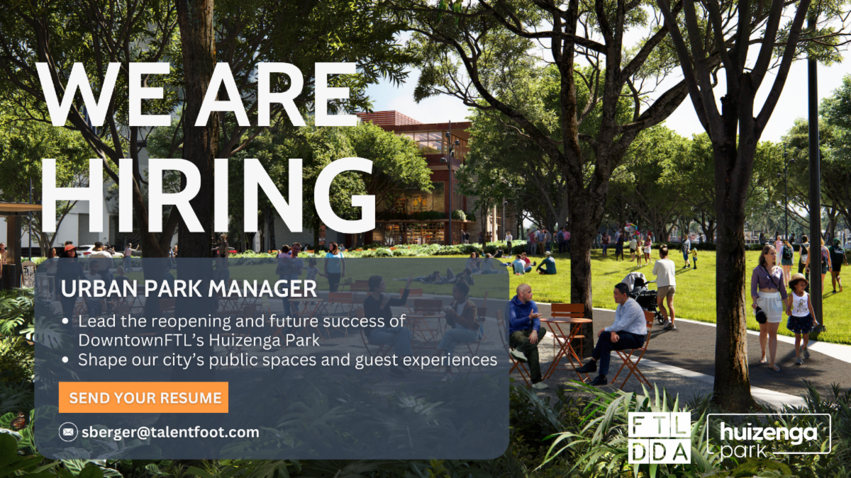 The Fort Lauderdale Downtown Development Authority (DDA) is looking for an Urban Park Manager to lead the reopening and ongoing success of Huizenga Park Reimagined—set to become one of the best downtown parks in the country when it debuts later this year. But that’s just the beginning! This role will also help shape the future of other key public spaces in DowntownFTL as the city continues to grow.