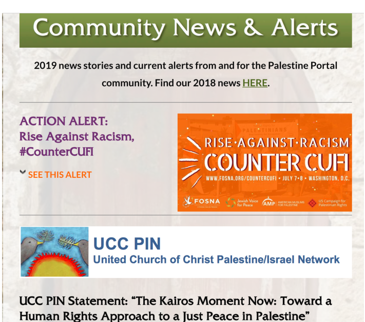 As we enter the summer, with military parades in Washington, Christian Zionism on the march, human rights for Palestinians and black and brown Israeli Jews trampled, and the lie of "two states for two peoples" finally exposed, our community of church-related organizations and their allies are fully engaged. In this issue: