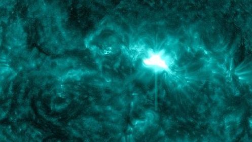 On June 17, NASA’s Solar Dynamics Observatory captured the Sun emitting a strong flare—a powerful burst of energy—peaking at 5:49 p.m. EDT. The observatory is designed to help us understand the Sun's influence on Earth and near-Earth space by studying the solar atmosphere on small scales of space and time and in many wavelengths simultaneously.