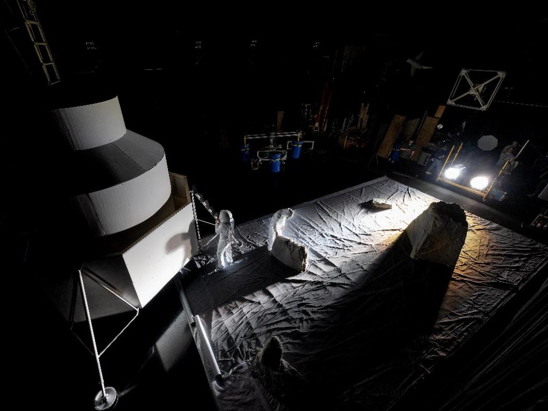 Using high-intensity lighting and low-fidelity mock-ups of a lunar lander, lunar surface, and lunar rocks, NASA engineers are simulating the Moon’s environment to study and experience the extreme lighting environment at the lunar South Pole.