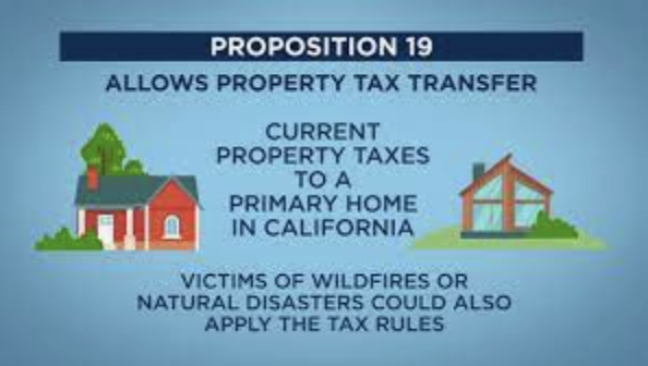 Below you will find some detailed information on California's Prop 19. In short, Prop 19 provides a benefit to a few different homeowners in the state of California. If you're over the age of 55, and you sell your home, you have a two year window to buy a new one (within the state) and you can keep the same taxable value from your previous property, and have that applied to your new place. Additionally, if you've lost your home to a wildfire or other natural disaster you can have that old taxable value applied to whatever new property you buy. These benefits will not be automatically applied during your new purchase, you have to file a BOE-19-B with the county assessors office while in escrow on your new home. For more information visit, https://www.boe.ca.gov/prop19/ where you can read more, and access the necessary forms.