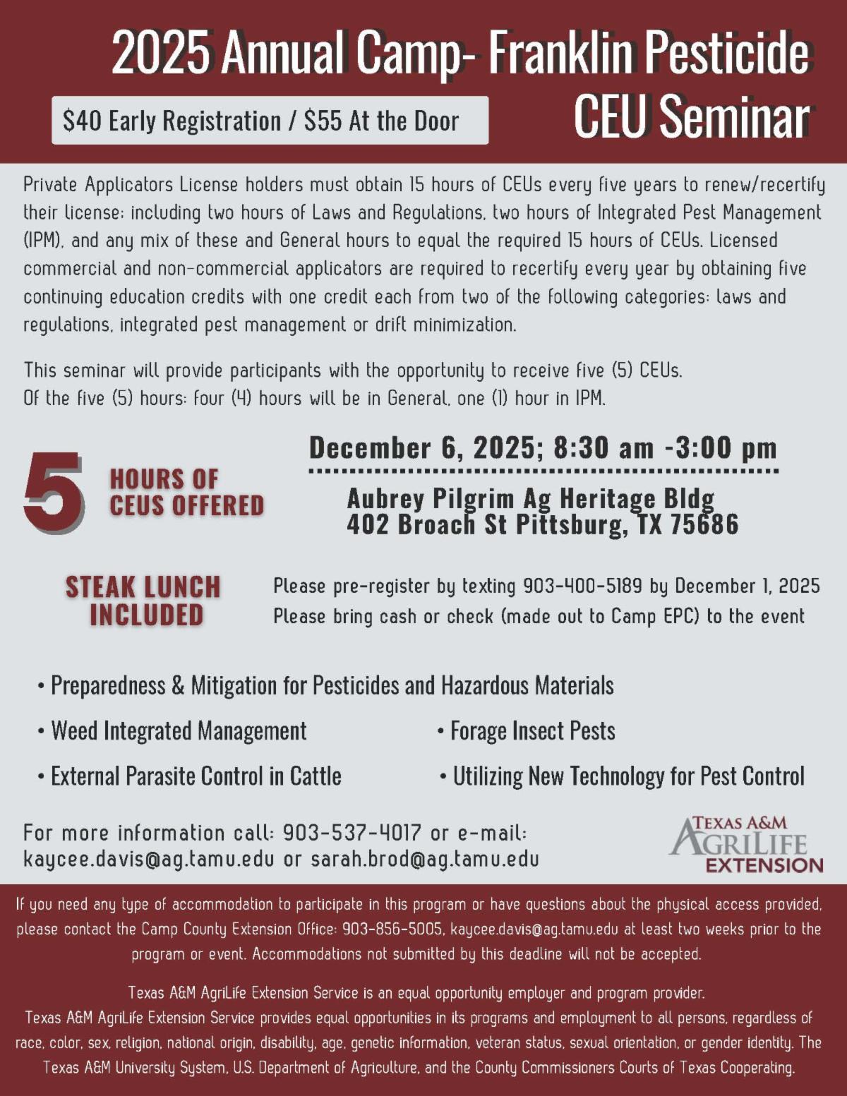 Please note that our program has a strict no-refund policy. Once registered, fees are non-refundable. For any questions or clarifications before registration, please contact Dr. Bonaiti at gabriele.bonaiti@ag.tamu.edu. Thank you for your understanding.
