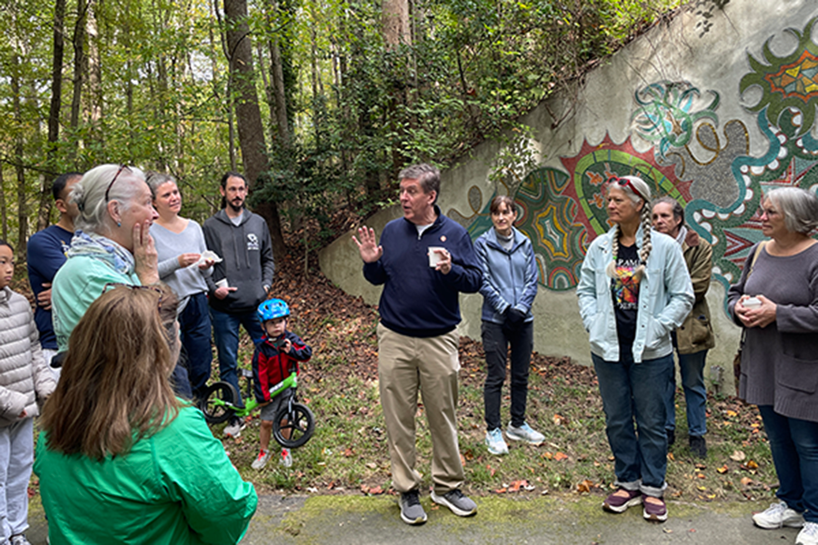 On Saturday, I led a community walk around Hunters Woods Plaza organized by the Reston Community Center. Thanks to everyone who joined, as well as to our docents Wayne Schifflebein with Reston Museum, Phoebe Avery with Public Art Reston and Ken Rosenthal with Reston Association.