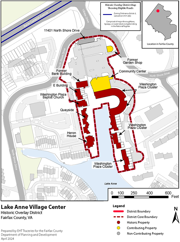 The Lake Anne Village Center Historic Overlay District includes (see map):