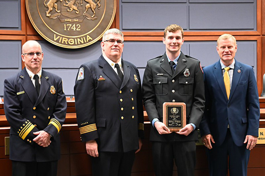 At the meeting, the Volunteer Fire Commission presented their 2024 Volunteer Fire and Rescue Service Awards. I want to recognize Sebastian Herbolsheimer with Vienna Volunteer Fire Department who received the Firefighter Rookie of the Year Award. Since joining the department in 2021, he’s shown exceptional commitment and diligence, exemplary performance and calm under pressure as he acts quickly to help those in need.