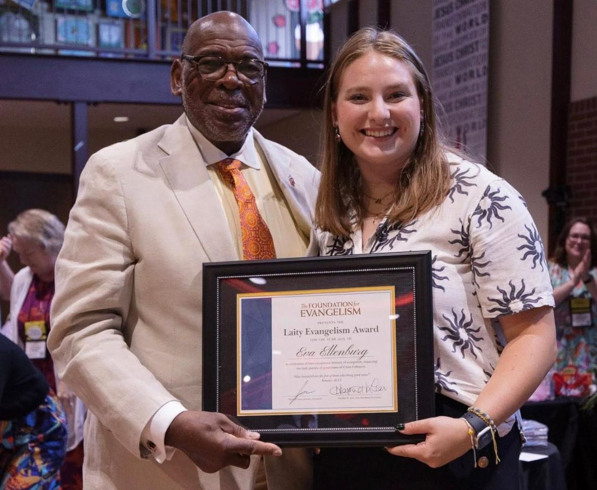 Eva Ellenburg '25 was the Lay category winner of the Harry Denman Evangelism Award. This award celebrates clergy, laity, and youth who exhibit exceptional ministry in evangelism, bringing people into a life-transforming relationship with Jesus Christ.