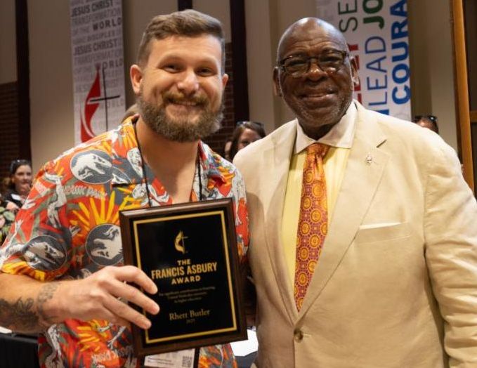 Rev. Rhett Butler '13 received the Francis Asbury Award. This award honors individuals making significant contributions to higher education and campus ministries within The United Methodist Church at the local, district, or conference level.