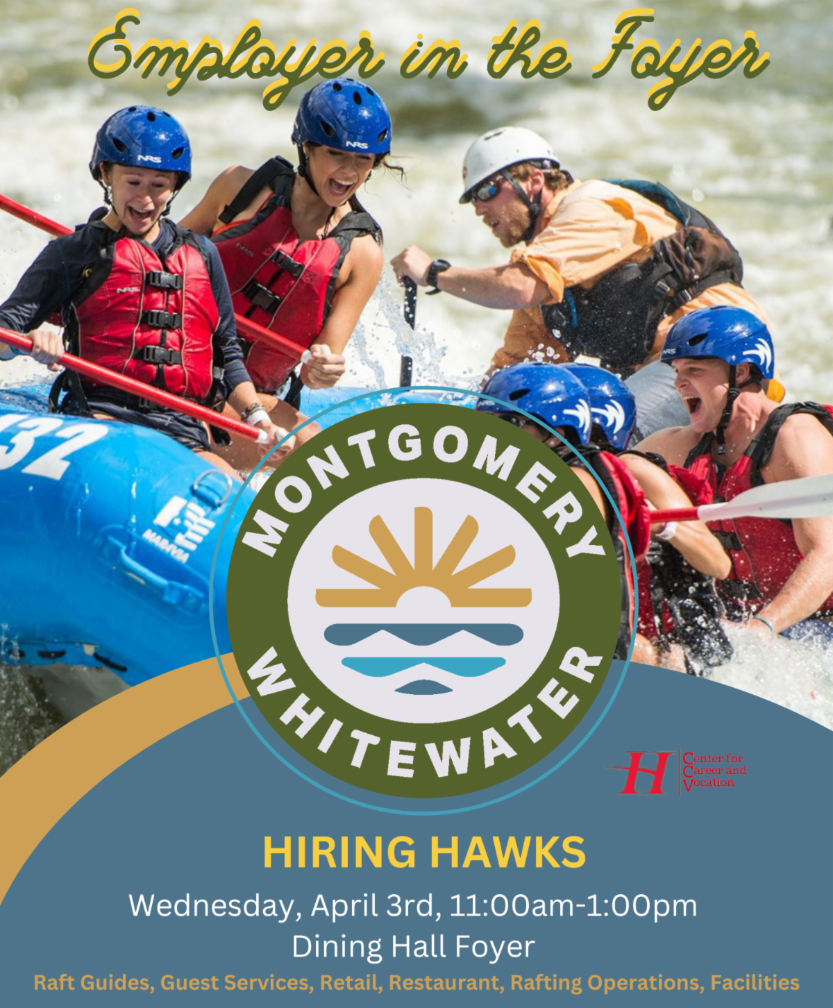 The Center for Career and Vocation will host an Employer in the Foyer on Wednesday, April 3, during the lunch hours. Come meet representatives from Montgomery Whitewater.