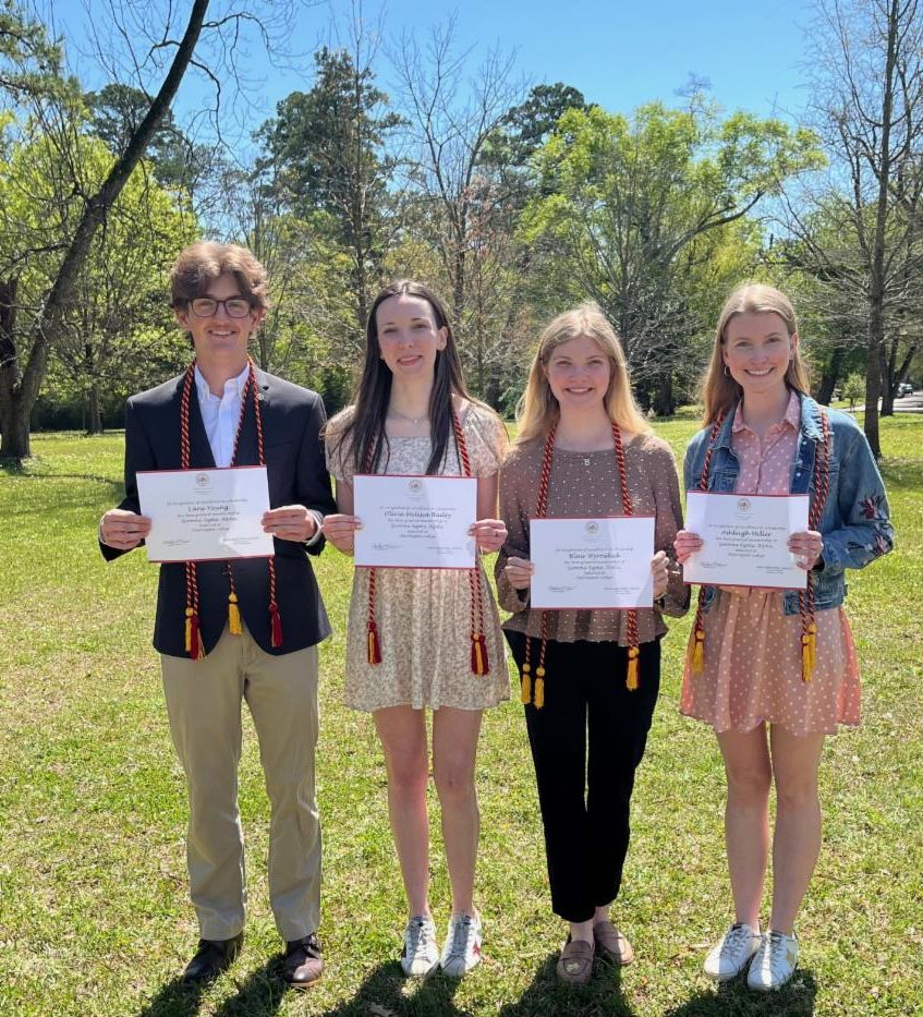 The newly elected 2024-2025 officers of Gamma Sigma Alpha are from left to right: Secretary Lane Young '25 of Horton, Alabama; President Olivia Bailey '25 of Florence, Alabama; Vice President Blair Wyrosdick '26 of Elba, Alabama; and Treasurer Ashleigh Miller '25 of Daphne, Alabama. | |