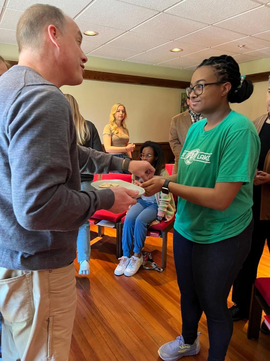 Dr. Stephen Sours, Professor of Religion and Chairman of the Department of Religion and History, presided over a Holy Week communion service on Thursday. | |