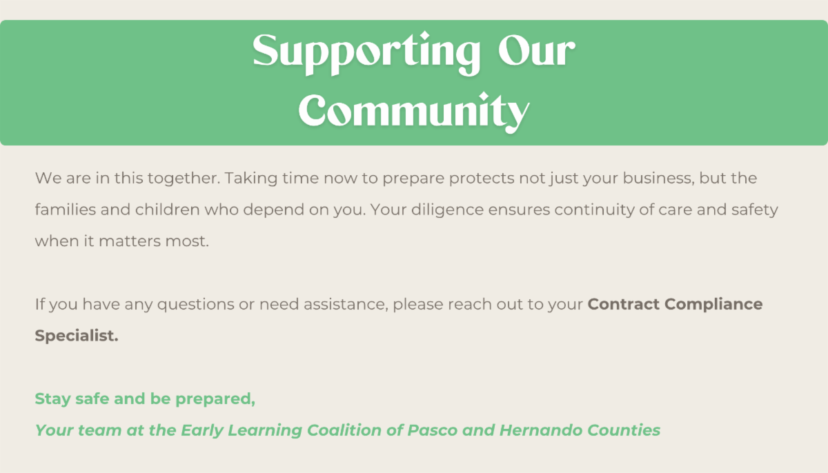 Early Learning Coalition of Pasco and Hernando Counties, Inc, | 12107 Majestic Boulevard | Hudson, FL 34667 US