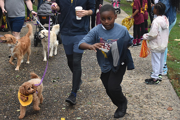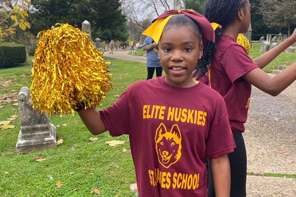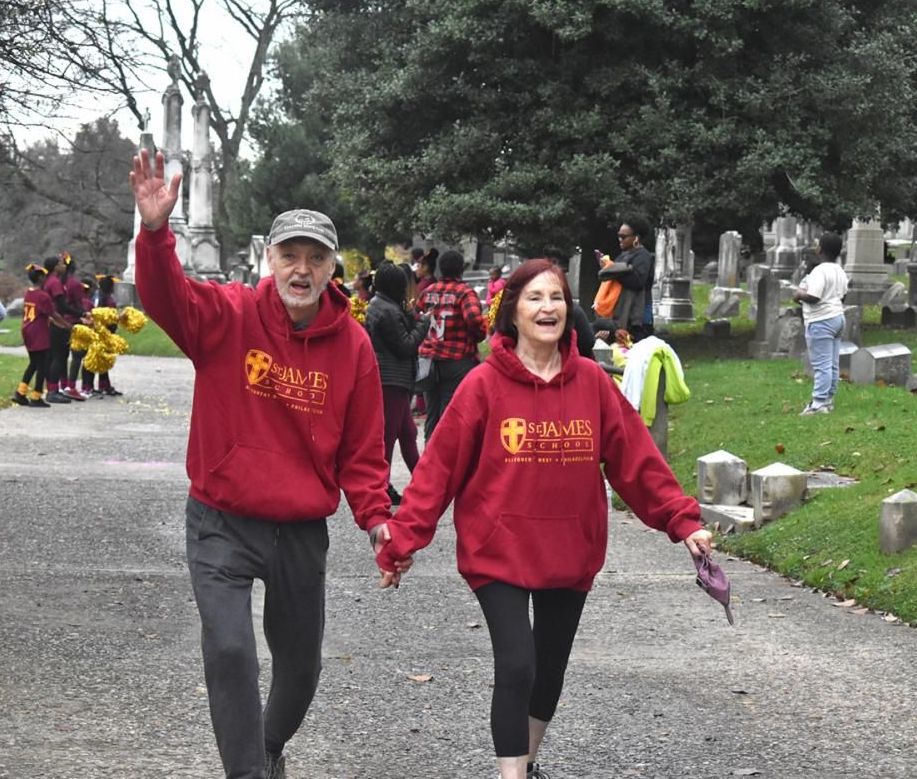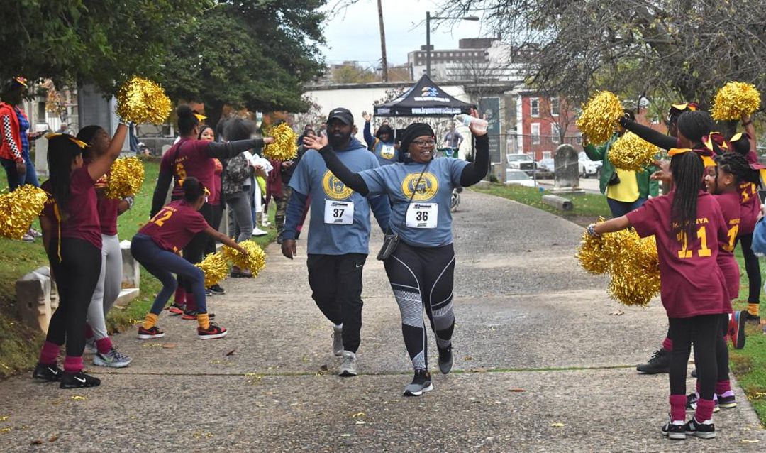 The neighborhood was filled with an exciting energy on November 12th, as those gearing up for the 5k mingled with patrons at our weekly Welcome Table Farmer’s Market. St. James cheerleaders were a wonderful addition to the 5K this year. You could hear them from blocks away cheering, “Keep the pace, win the race!” They did not stop until the last walker finished the course at Laurel Hill Cemetery.