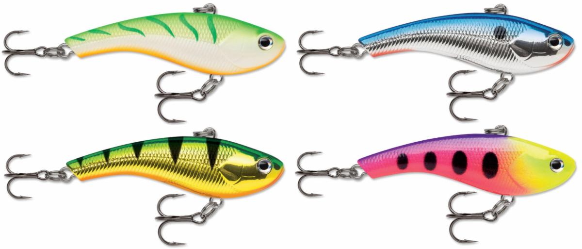 > “With quick rod snaps the Slab Rap searches in wide, erratic directions, circling back to center after pause. Lift-drop motion creates subtle vibration on rise, followed by evasive side-to-side motion on the fall. Weight forward design enables a rocking action for triggering negative fish.”